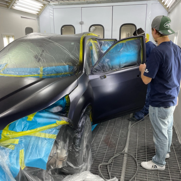 Zu Beginn durften wir die verschiedenen Bereiche des Unternehmens kennenlernen und die Geschäftsleitung hat uns, sowohl im Büro als auch in der Werkstatt, rumgeführt. Uns wurden alle Stationen erklärt, die ein verunfalltes Fahrzeug durchlaufen muss, um schließlich repariert zum Kunden zurückzukehren.