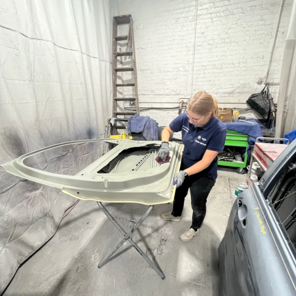 "Zu unserem Erstaunen wurde uns schon die Lackierpistole anvertraut und wir haben die ersten Teile mit Farbe veredeln dürfen."