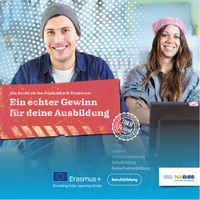 Dein Weg ins Ausland: Wie geht das und wer bezahlt? Was musst du beachten? Die kurze Broschüre gibt Auszubildenden, die gerne im Ausland lernen möchten, knapp und übersichtlich alle notwendigen Infos zu Auslandsaufenthalten mit Erasmus+ an die Hand - inklusive Infoteil für den Chef oder die Chefin.